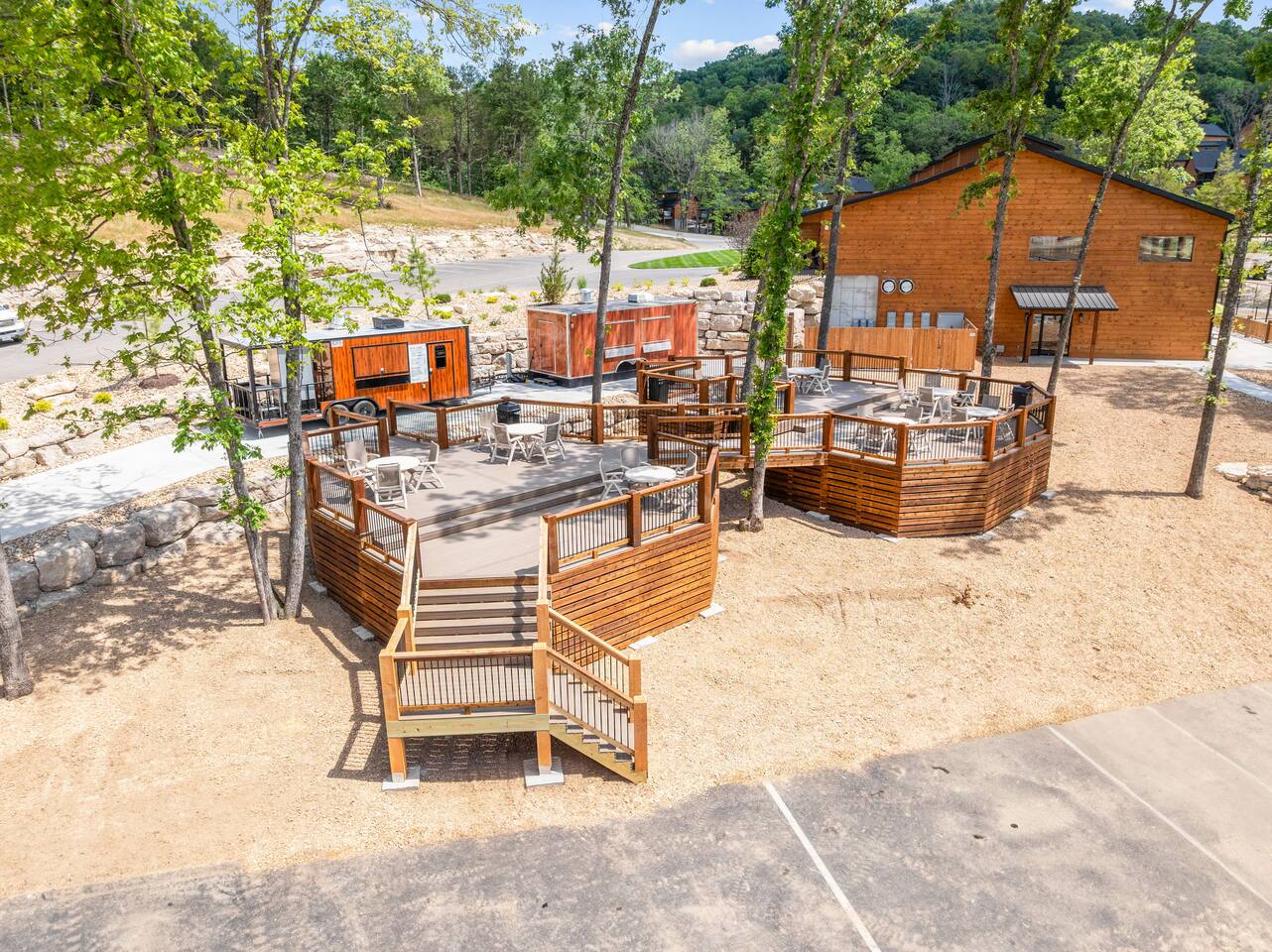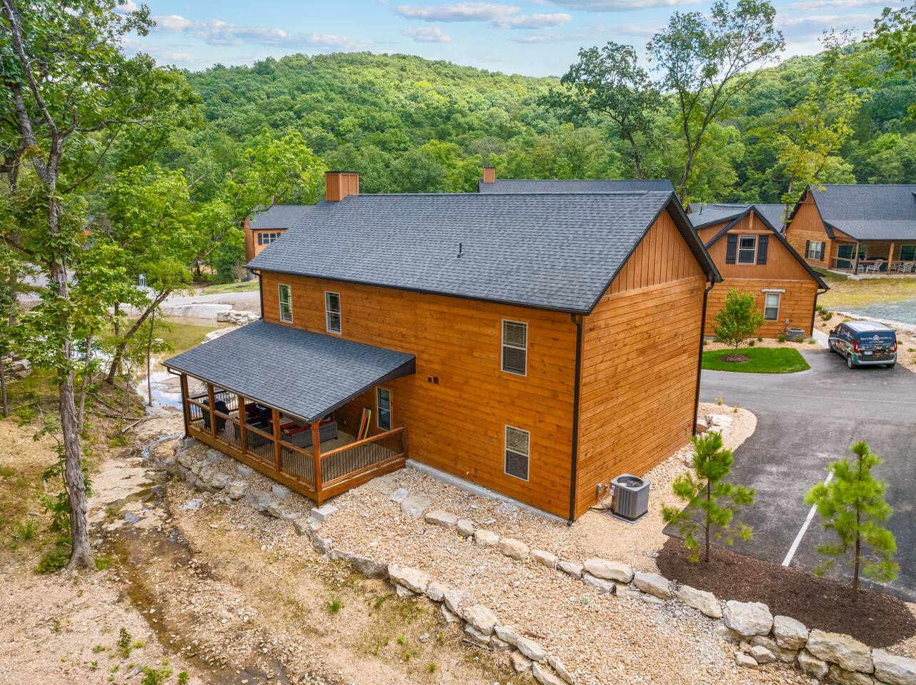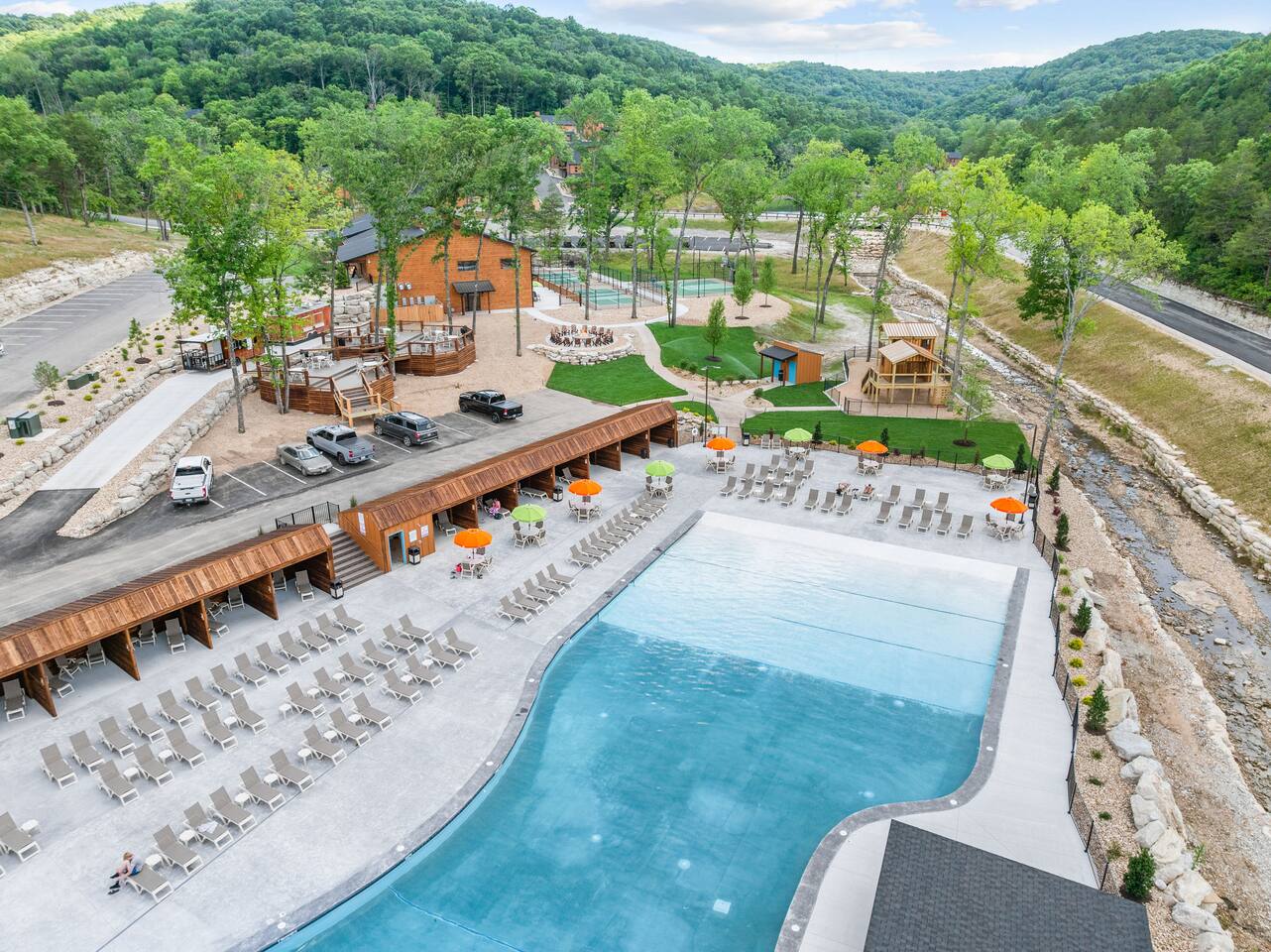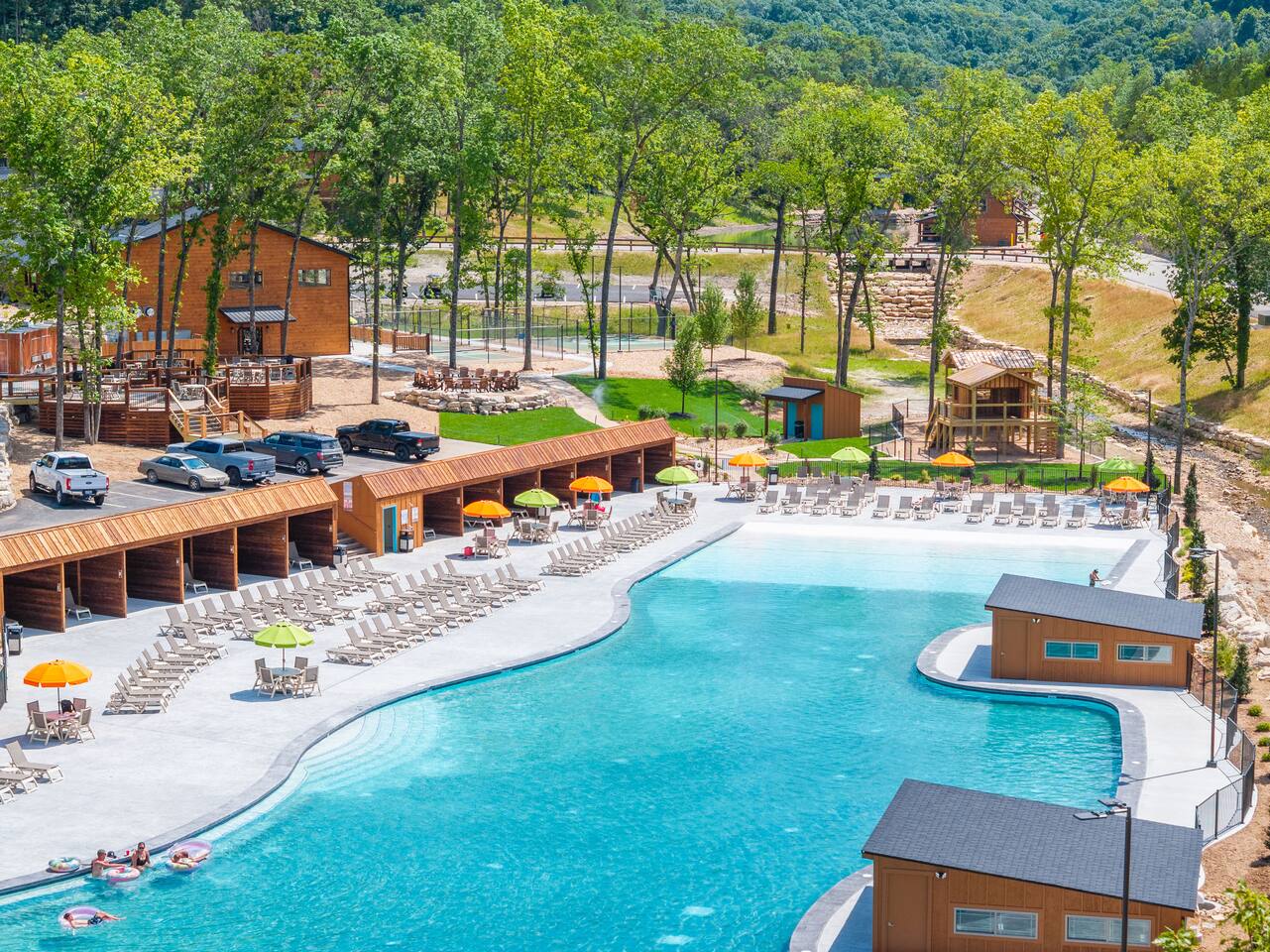 Tall Timbers Camp, located in Hollister, Missouri, it is just minutes from Branson and scenic Table Rock Lake, it is a thoughtfully planned, cabin-style residential and vacation‑rental community set within the wooded hills of the Ozarks 3 acre fishing lake 3 acre sporting lake for paddleboards and kayaks Indoor swimming pool Community hot tub Walking and hiking trail Oversized outdoor nature pool Pickleball Courts Custom playgrounds Open recreational fields Food truck park Golf cart rentals
